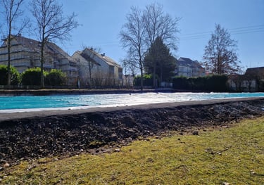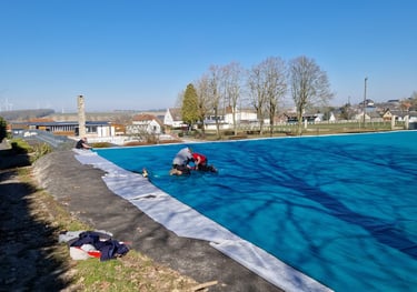Récupération de l'eau de piscine, déchlorage progressif avec le temps pour permettre une réutilisation par l'arrosage - pour une collectivité